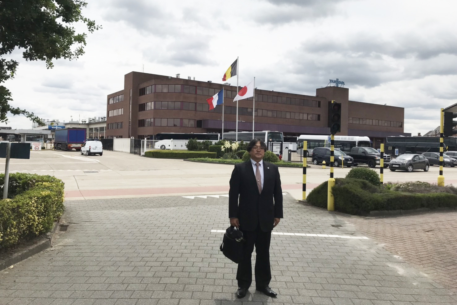 バンフール社のご厚意により現地ベルギーの国旗と共に日本の国旗も挙げていただきました。