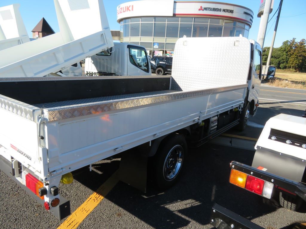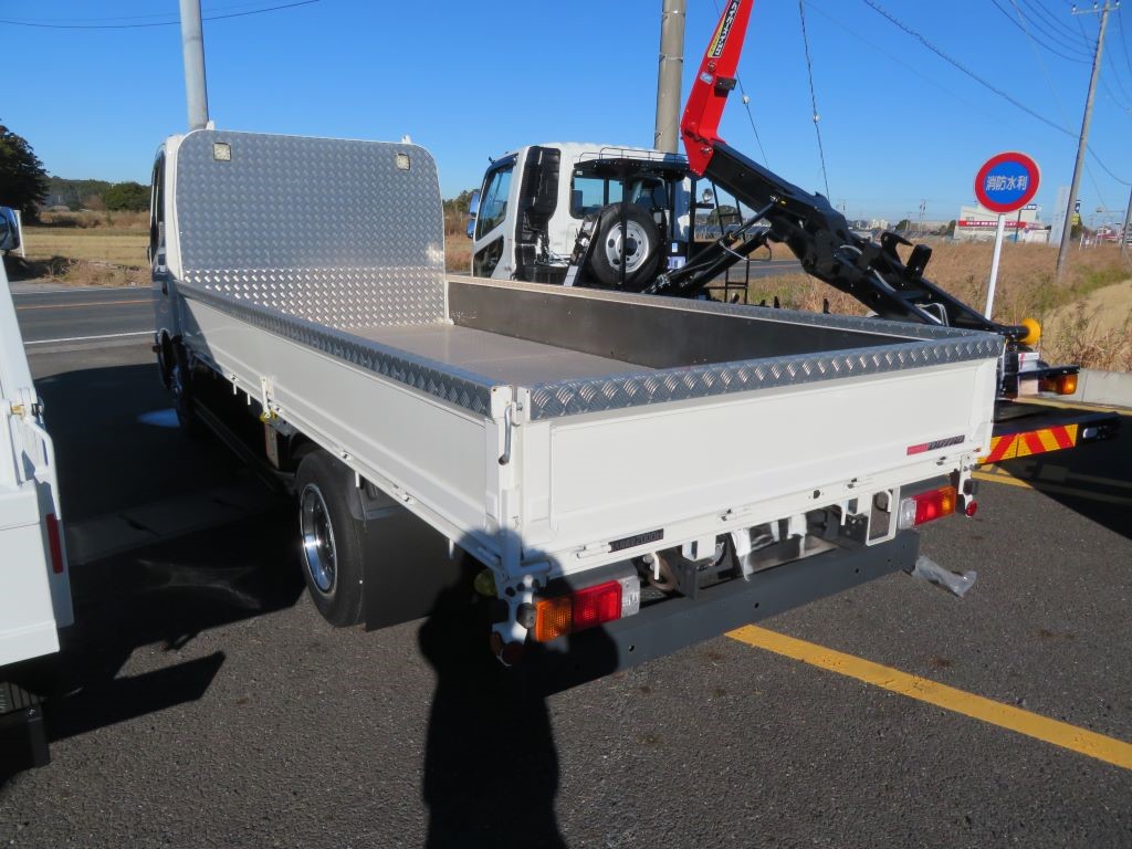 未使用車、木製平ボディ、全低床、リーフサス、荷台(4355/1895/380)、スマートキー2個、リヤ縞板、メッキミラー&ステイ、左右メッキコーナーパネル、フロントスポイラー、メッキナンバーフレーム、メッキバンパーガーニッシュ、愛車セット、ETC車載機、ドライブレコーダー前方、特別仕様車